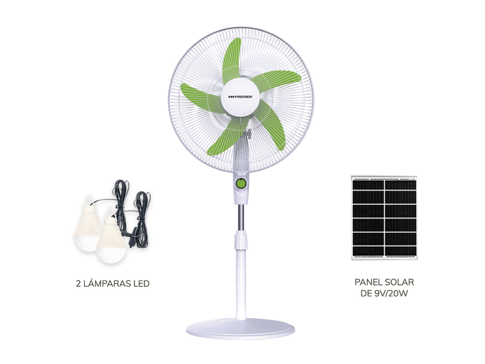 Abanico 18" de pedestal, recargable, 5 aspas, manzana verde
