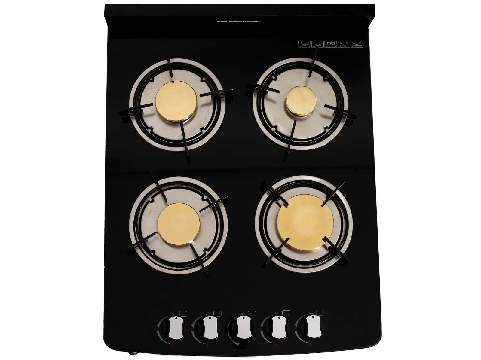 - 4 gas burners and one gas oven feature: - pulse ignition