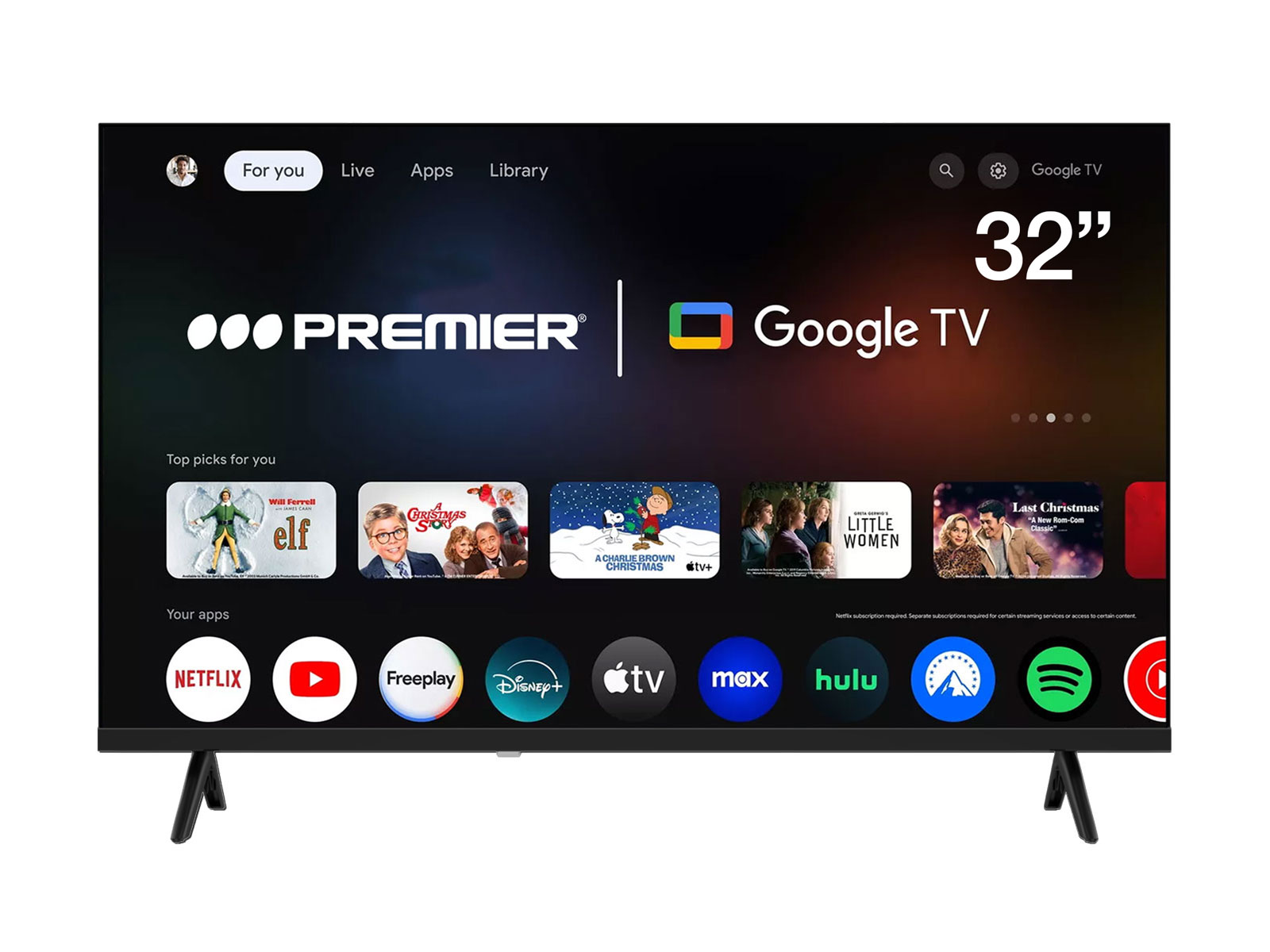 • smart tv hd de 32", sin marco, google tv